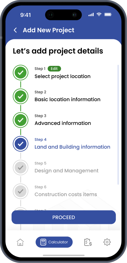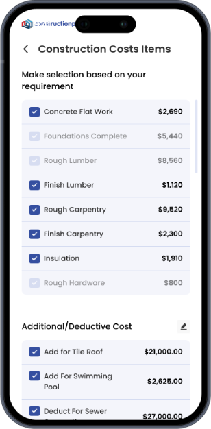 Whether you’re planning an improvement, remodel, or new build, it guides you through intuitive input fields with smart, preloaded suggestions based on common project needs.