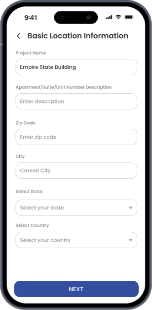 Get your project location autofill by using our current location feature from app. You can also try search and find your location.